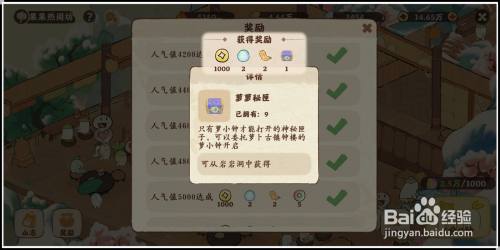 获取秘匣方式一:打开果果热闹坊,不停完当作预约订单和进级家居等增长人气,当人气值到达指定命目即可得到萝萝秘匣。