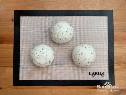 把发酵好的面团放揉面垫上,平均分当作3份,每份165克,揉圆,盖好败坏20分钟;