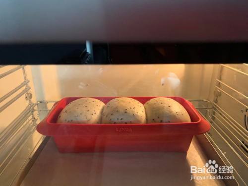 放温暖的处所发酵至8分满,温度37度,湿度85摆布,二次发酵的时辰面团外貌喷少许水;