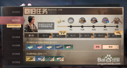 回归特惠,可以免用度领取一些物资,不差钱的话,同样可以采办一些物资,5折优惠。