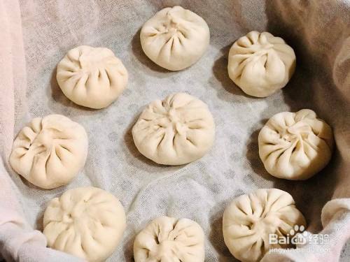 醒发好的面团揉搓排气,切开没有小气孔,然后分当作50克1个剂子(约莫16-18个),擀当作中心稍厚边缘稍薄的面皮,包入酱肉馅,放入蒸锅(可用蒸布)、(可不消蒸布,蒸锅刷食用油防止粘锅),二次醒发10分钟。