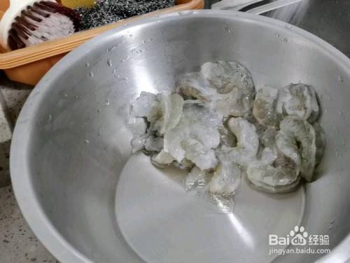 待揉出虾仁粘液后用水洗濯洁净,并沥干水分。