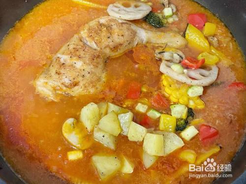 放入烤完的鸡腿,放入咖喱块,炖煮30分钟