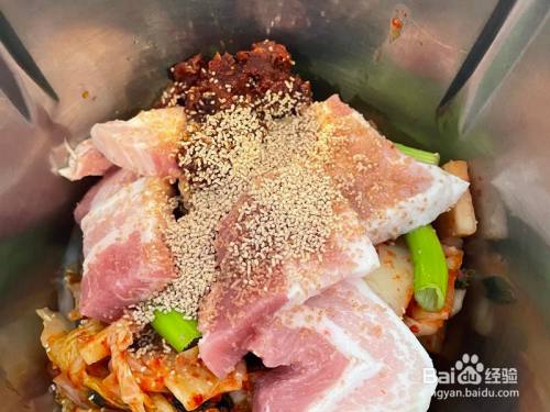 五花肉150克,(看个人喜欢添加),(切块)泡菜200克,(切小小块),葱白,插手芝麻油辣椒酱辣椒粉混淆酱料,插手鲣鱼粉10克,水500克,