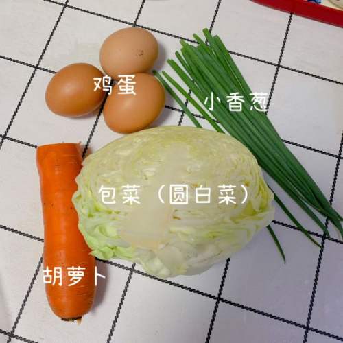 - 1‼️参考用量‼️包菜1/2个 胡萝卜1/3根 鸡蛋4个 很大很厚实的一张饼哦 三个大人吃 有富余 ~请列位宝宝按照自家环境和个人爱好 ~ 自行调解用量和比例 ~