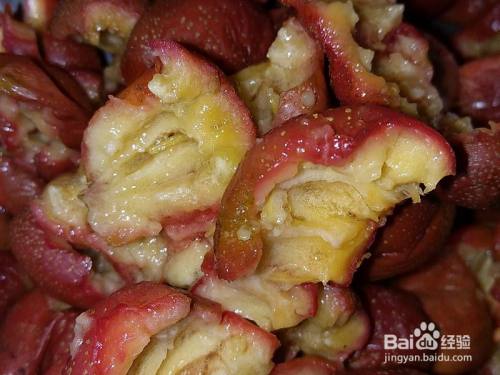 取好后的果肉大概只有3.6斤了。。。,取的历程中可以看到粘稠透明的果胶渗出。