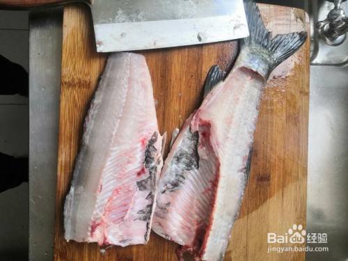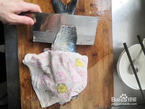 我怕切着手,找了块洁净的布,拿布按着不打滑,从鱼尾巴斜着贴着鱼骨头切下肉来。我左撇子,以是图在左边往右舒畅