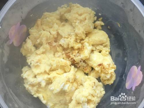 锅内放少许油,放入打散的鸡蛋炒当作块状后盛出备用