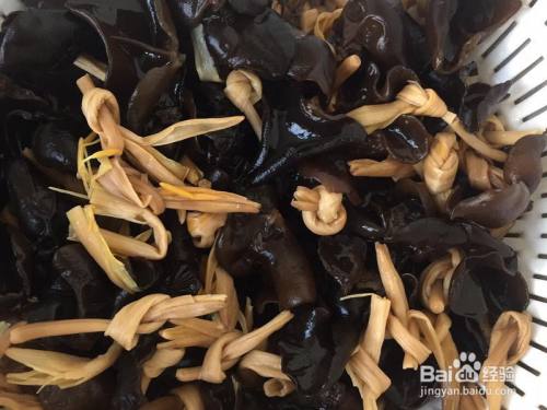 木耳若干泡发,干黄花菜若干泡发好打结如图