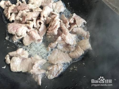 肉片我买的现当作的鲜精肉片,夸大一下肉片不消淀粉勾芡。肉片下油锅滑散断生后立刻盛出备用