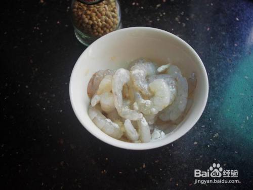 虾仁用盐,白胡椒,淀粉抓匀后稍微腌一下。