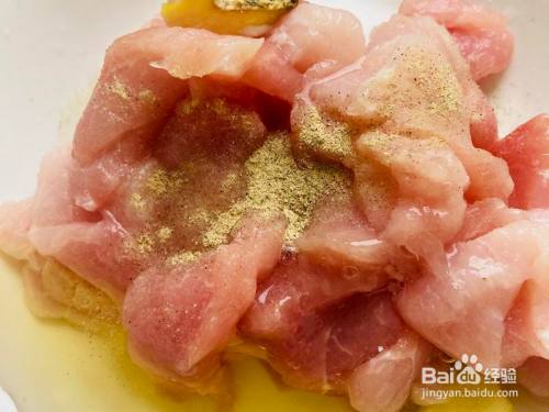 猪肉切片(垂直纹理切),盐,姜片,鸡蛋清,白胡椒粉,拌匀腌入味。后面打了蘸碟,此处盐用量就比力少。