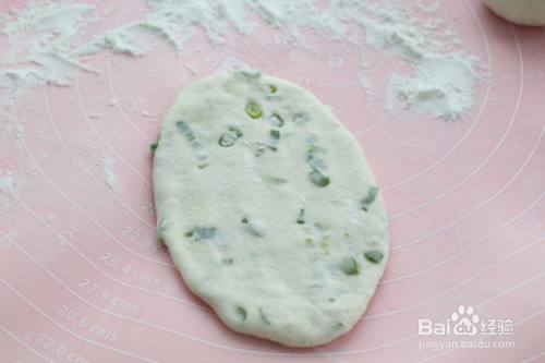 取一个面剂子将两端捏在一路,用擀面杖擀当作卵形的饼状。