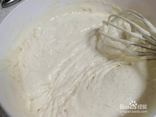 把面粉、白糖倒入米浆中,搅拌当作这样。用料表水之以是说适量是由于面粉大米的吸水性差别,水用量也有所不同,终极搅拌当作这样就可以了。