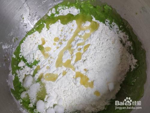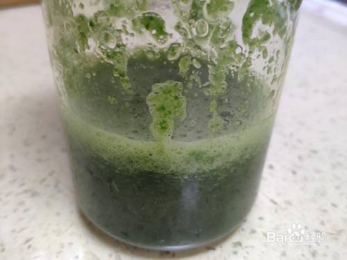 再来建造菠菜面团。菠菜榨汁,过滤以后放入厨师机内