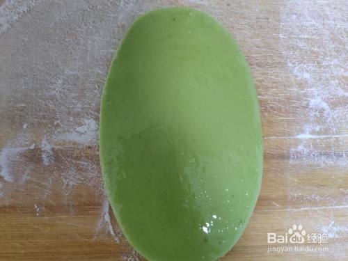 将菠菜面团擀开,中心涂一层玉米油