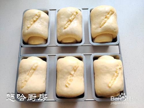 土司盒放入温度34度、湿度85%的情况中举行二次发酵,发酵时间约50分钟。