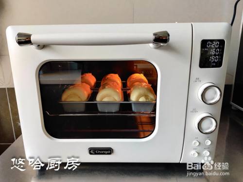 模具放入烤箱中基层,上管160、下管190烘烤20分钟。烘烤的时辰满屋都是蒜喷鼻味。