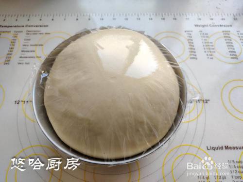 面团收圆放入摒挡盆中,盖保鲜膜在28度的情况中举行一发。
