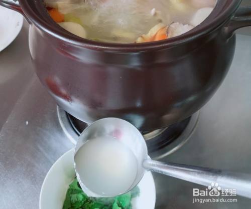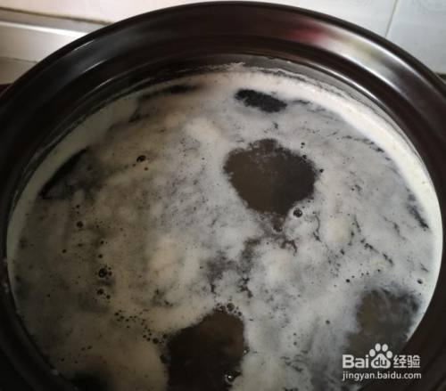 再次大火烧开,还会发明少量浮沫,用大勺子撇去。