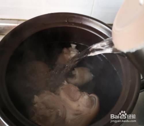 羊腿肉放回砂锅,从头注入开水(敲黑板)。开水要一次性加足哦。