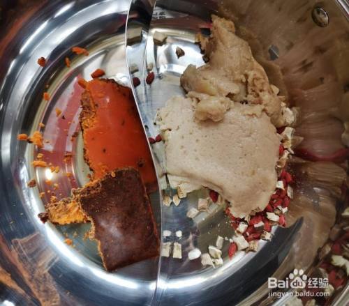 别离取100~150克,放入鸳鸯锅里。