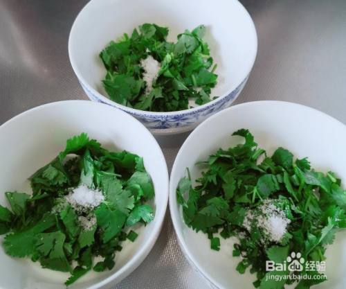 放入小碗中,再撒少许食盐。