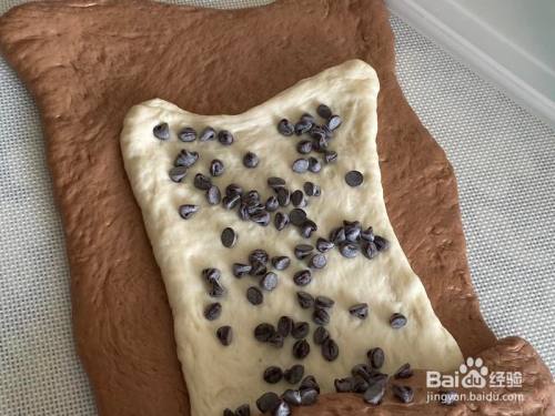 叠加在一路,中心撒巧克力豆卷起。