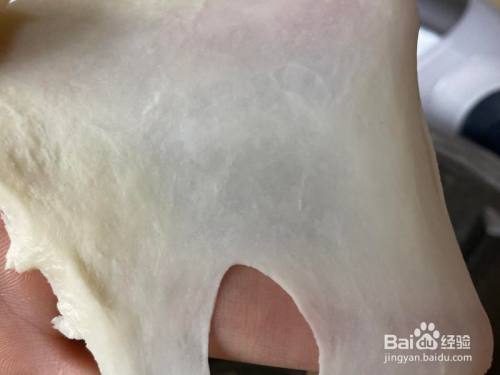 再揉4分钟,大概有7-8分膜,取150克白面团出来。其余的450克面团继续留在本家儿锅里。
