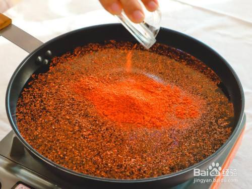 其次放入韩式粗细辣椒粉。