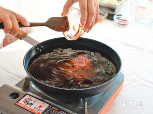 锅中添入净水,先把辣酱和酱油另有白糖放进去。