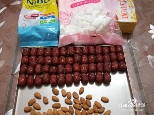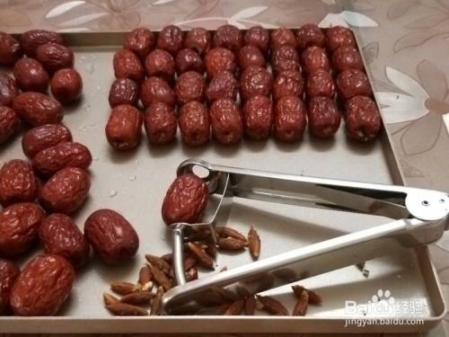 红枣洗洁净,去核。最好先放烤箱,上下火200度,烤2分钟摆布,(红枣有一点软了就可以了,不克不及烤太久,太软了也欠好去核,会把红枣肉都弄出来的),拿出往复核,很好去,要是不烤软,要用许多力,手会弄痛的。