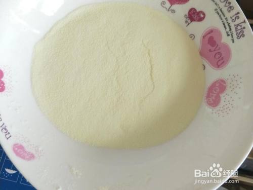 盘里倒入30克奶粉