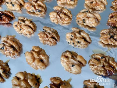 1、烤盘铺上油纸 2、将核桃仁排列队 3、不必预热,上下烤,170度15分钟