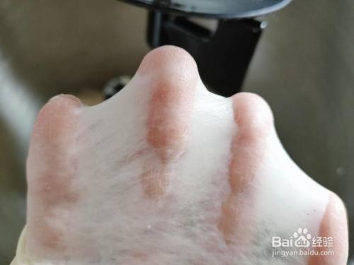 黄油以外的所有质料放入厨师机,开1档低速搅拌当作团,调3档高速揉出厚膜状况。 插手软化的黄油,继续用高速档揉至能拉出大片健壮的透明薄膜,撑开破洞边沿平滑无锯齿。
