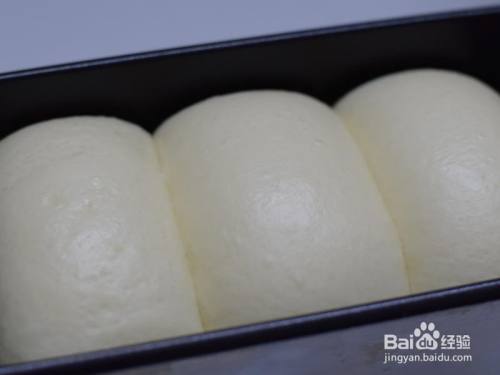 收口岌岌可危下,依次放入吐司盒。放在温度35℃摆布,湿度75%的情况下发酵至模具8分满。