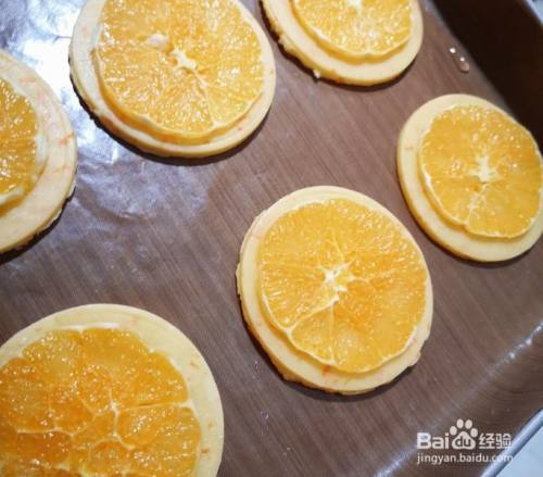 放上橙子片 送去预热好的烤箱 180度风炉烤20分钟