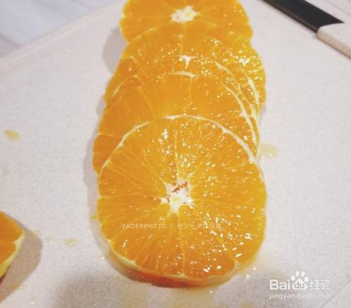 橙子中心部门切出6块薄片 两个橙子就是12片 两端就吃了吧 嗯 很甜 备注:这一步必然要去除阁下的白瓤,不然会有苦味!!!