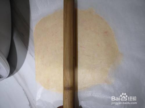 倒出来的面团前后放上硅油纸 擀当作薄片