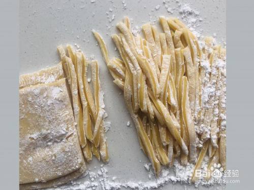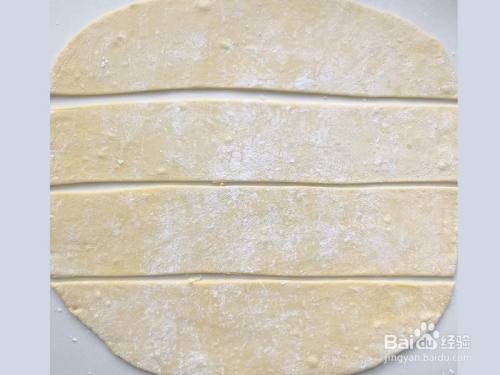 把面饼切当作细条状,大概和面皮厚度差未几就可以了。我的皮擀的有点薄了,炸出来有点扁,不外本身家吃不影响~