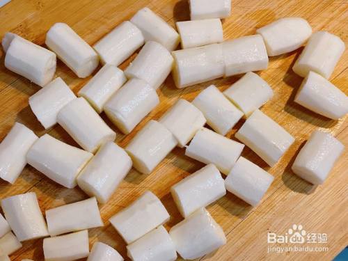 即将快到1个半小时的时辰,把山药清算一下,去皮冲洁净,切当作2厘米摆布的段,放到鸡汤里。