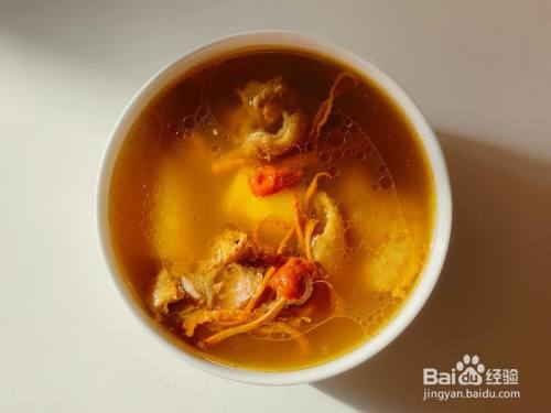 放入虫草花,同时再插手一些开水,必然是煮沸腾的开水,由于颠末一个半小时的焖煮,水会少一部门,我们使用添加山药和虫草花的时间,续一些开水进去。盖上盖子继续小火焖煮20分钟。