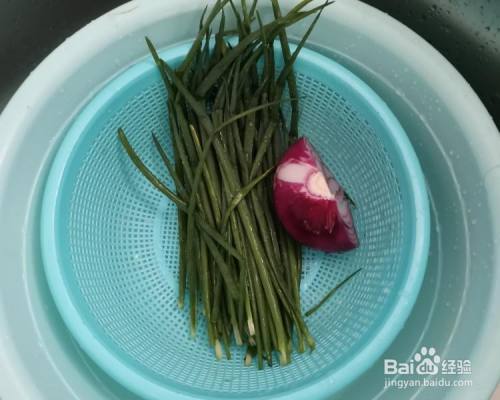 小葱摘好洗净,洋葱筹办好,姜洗好