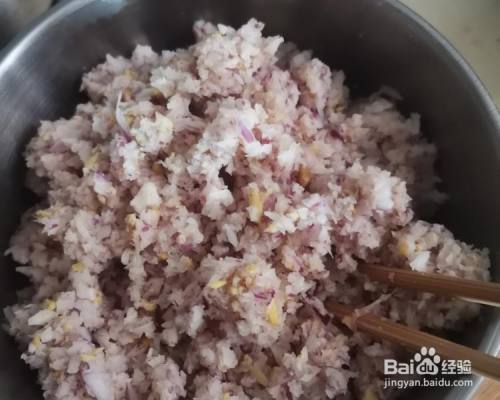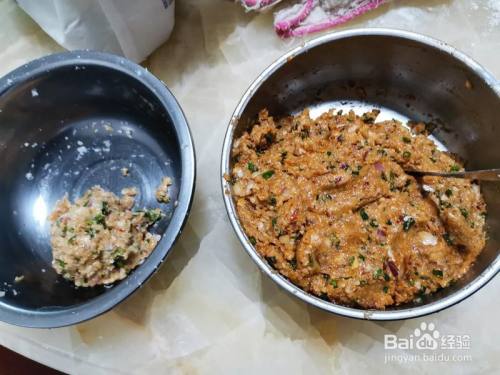 左边是给小孩包的馅料,右边是我们吃的。(以前做包子的时辰,馅料有炒熟,此次没有炒 )