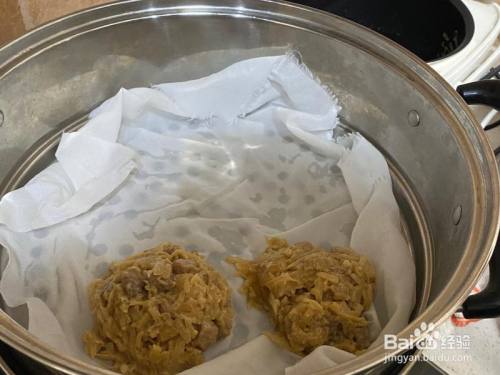 插手红薯淀粉,一边加一边拌,大颗粒要搓开,两人共同效率更高哦,到基本能当作型就关火,用勺子整形,就可以放入蒸锅啦。