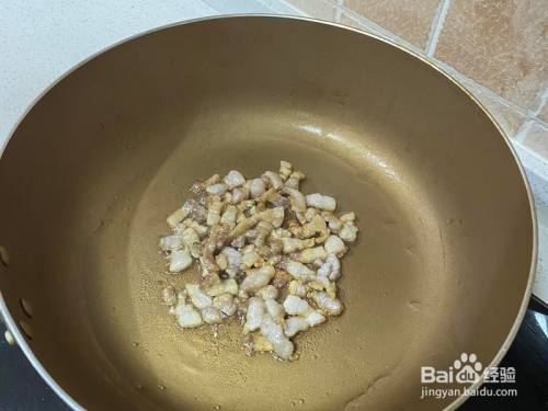 肥肉先下锅中小火煸一会