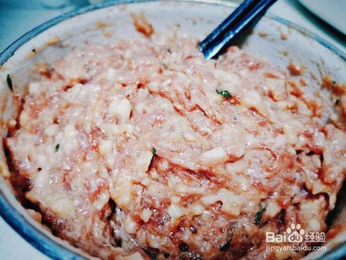 起头往馅里加水。加一点,搅拌至完全接收。反复至馅不吸水,较着变白。 放冰箱里冷藏。