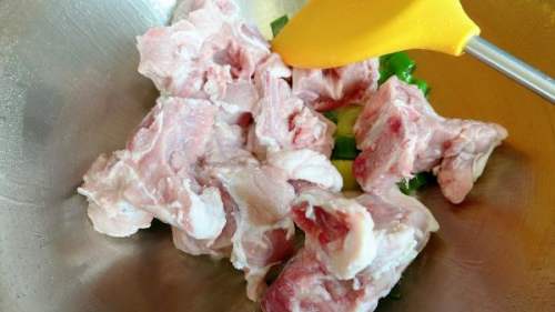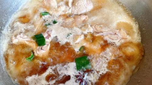 - 3放料酒,生抽翻炒片三伐往刻,加没过脊骨的开水盖盖子炖20分钟