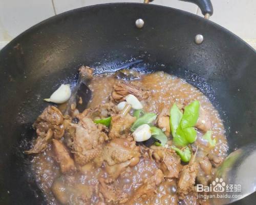加热水没过鸡块。 实在我又多加了许多,有宝宝吃,可以炖烂点。 大火煮开转小火,炖! 炖到用筷子可以等闲扎透鸡肉了,调大火收汁。