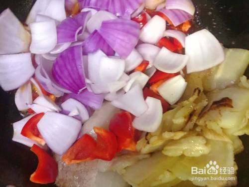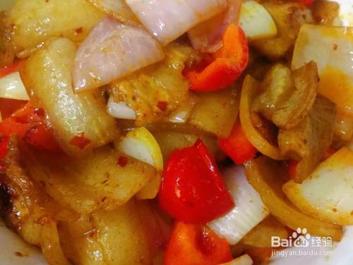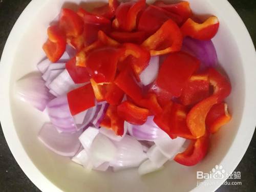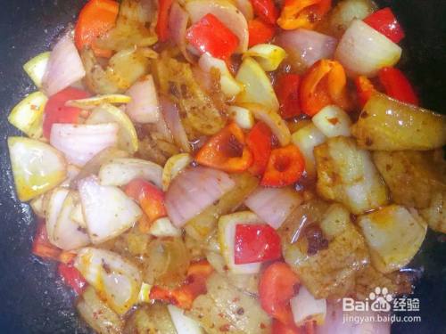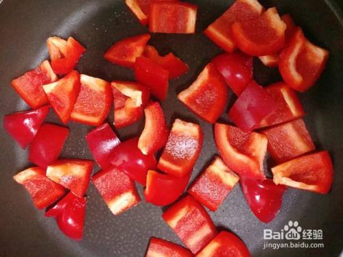甜椒切小块,锅中不放油,炕干水分,加适量盐。